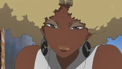 Atsuko is a tall slender woman with dark brown skin. Her hair is naturally a very light blonde and is usually styled in an afro. In terms of style, Atsuko's fashion varies throughout the show. While she's working, she dresses modestly, though there are moments when we see Atsuko dress similarly to Michiko and show off ample amounts of skin.